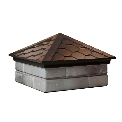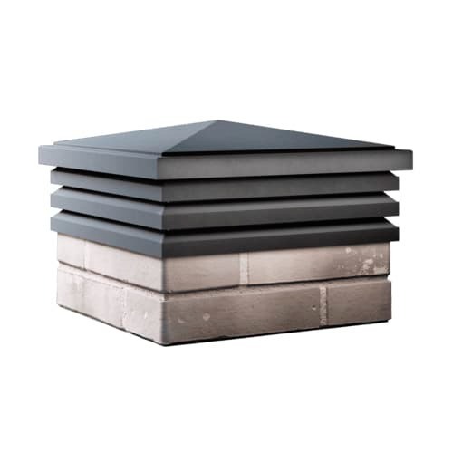 Простая и лаконичная форма, декоративное оформление в виде имитации черепицы, наличие капельника и возможность оснащения фонарем и пикой — все это колпак Everest.